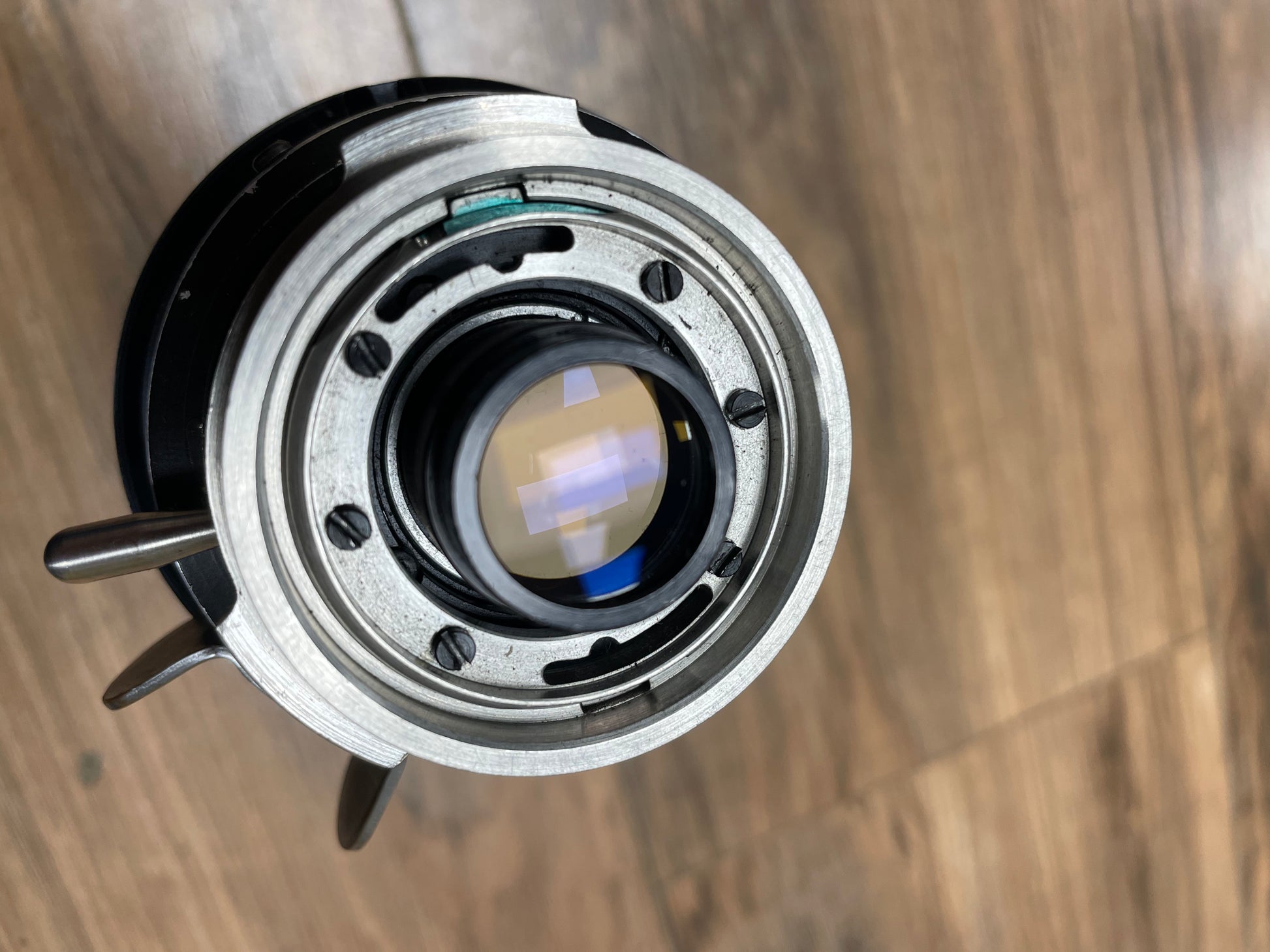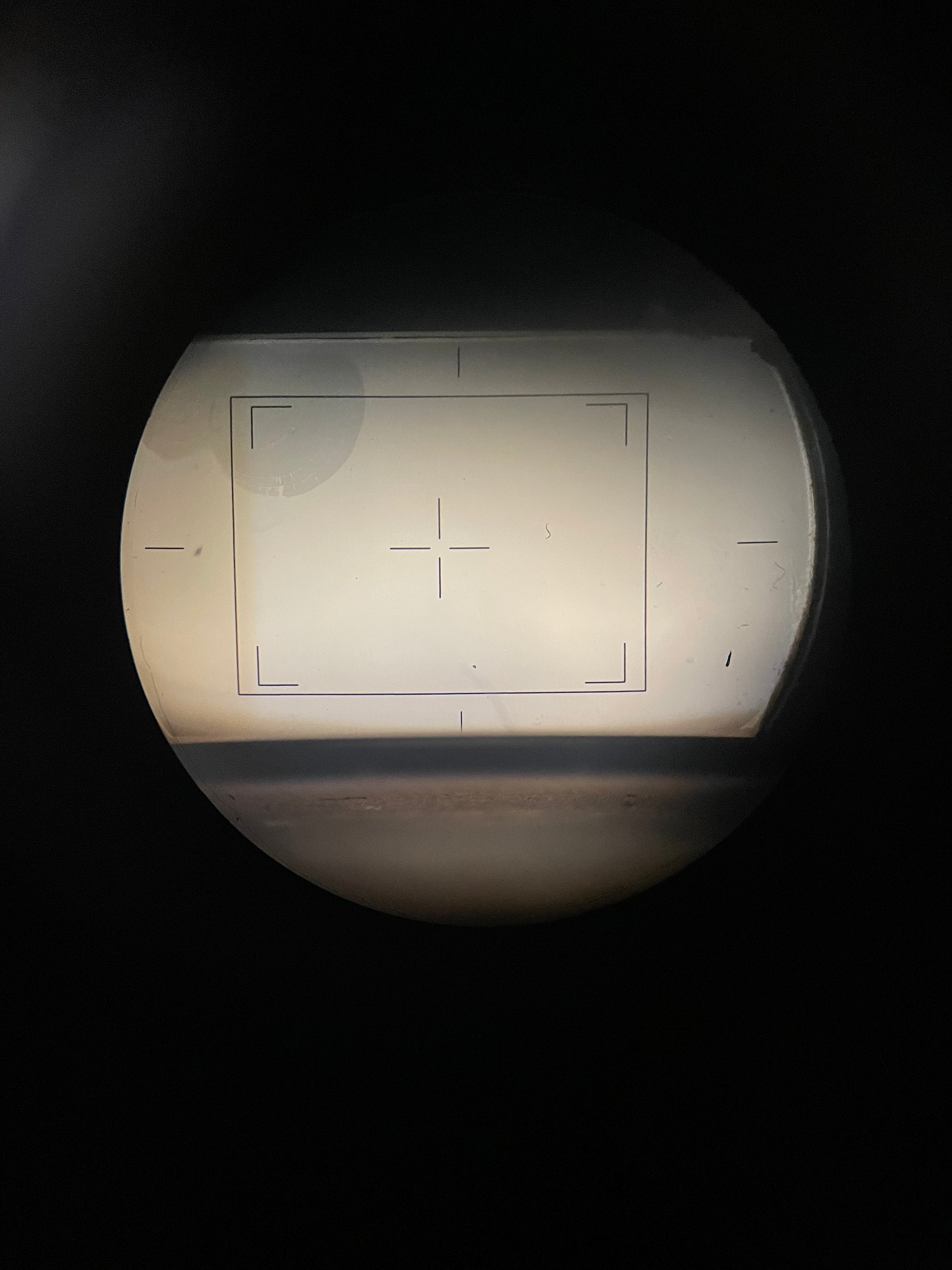 Camera and magazines are all overhauled. Lens is collimated and everything is set to factory specs. There is a slight blemish on the top left corner of the groundglass. This does not affect the filmed image and is only in the viewfinder. See picture for reference.
