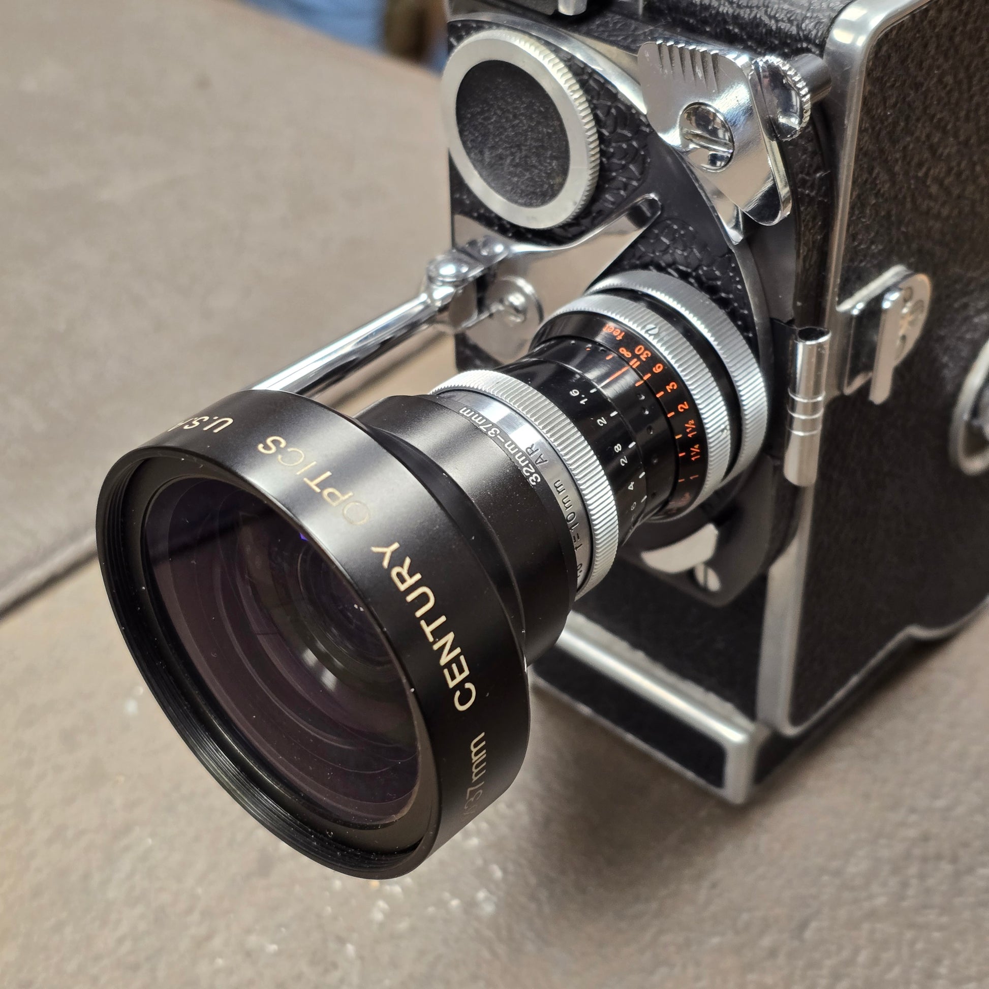 Switar 10mm f1.6 AR C-Mount Lens with Century Optics .65x HR Wide Angle Converter