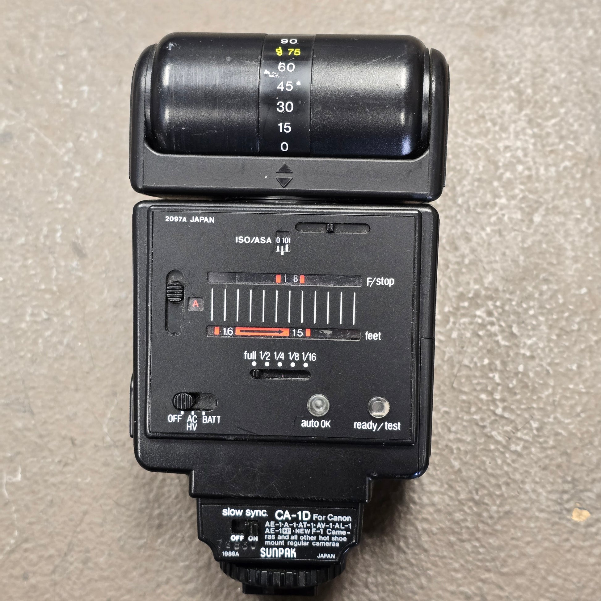 is a simple to use, ideal attachment flash for a 35mm film SLR , CA-1D For Canon AE-1 or just about any other film camera with a hotshoe.