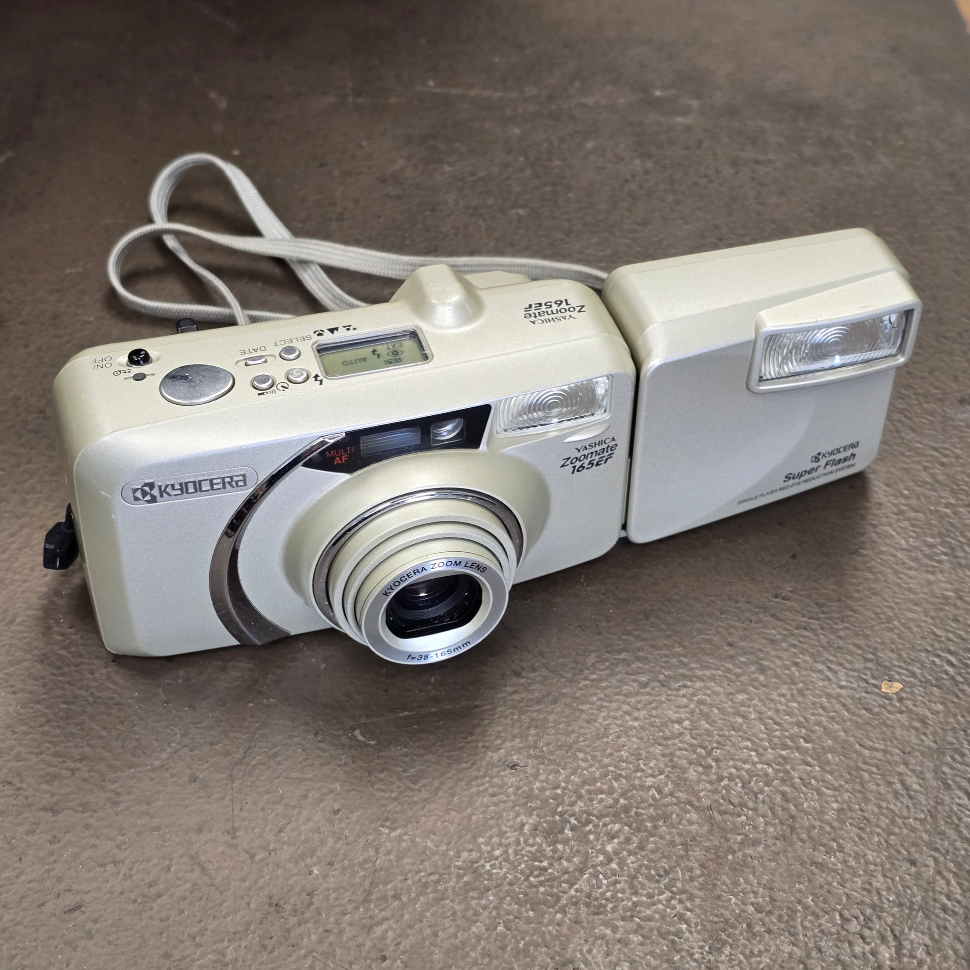YASHICA ZOOMATE 165EF 35mm FILM CAMERA with 38-165mm Zoom Lens + FLASH KYOCERA